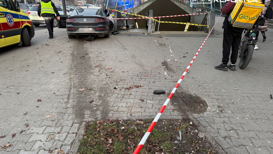 Ze wstępnych ustaleń wynika, że kierujący samochodem osobowym marki volkswagen z nieznanych przyczyn uderzył w tył hondy, następnie stracił panowanie nad autem i wpadł na pas zieleni, chodnik i ścieżkę rowerową. Pojazd delikatnie musnął słup i jadąc dalej, staranował stację rowerową i dwie elektryczne hulajnogi. Następnie uderzył w betonowy śmietnik, kończąc jazdę na szklanej wiacie wejścia do metra.