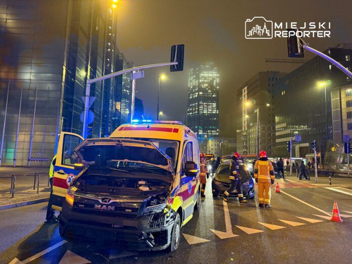 Groźny wypadek karetki pogotowia w centrum Warszawy. Ranny kierowca ambulansu trafił do szpitala.