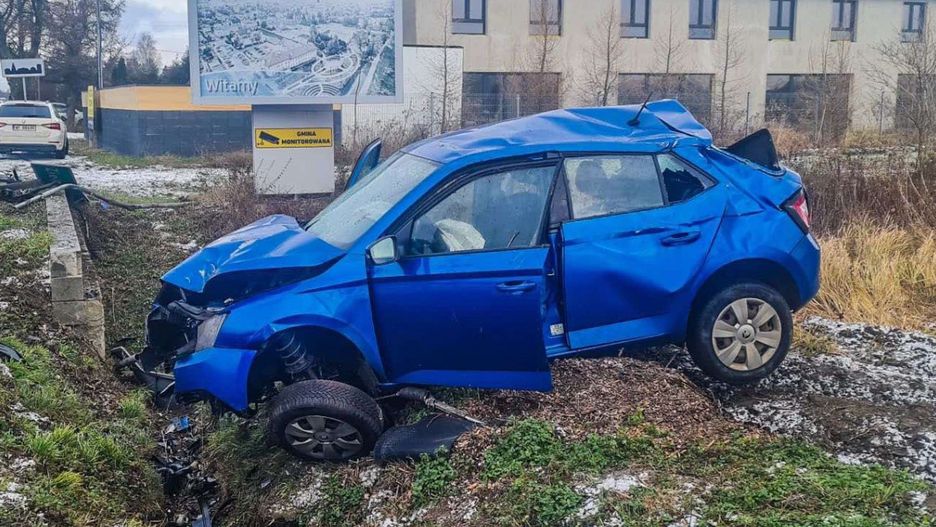 Ze wstępnych ustaleń wynika, że kierujący samochodem osobowym marki skoda nie dostosował prędkości do warunków panujących na drodze i uderzył w barierki, znaki oraz przepust, następnie dachował i zatrzymał się na kołach.