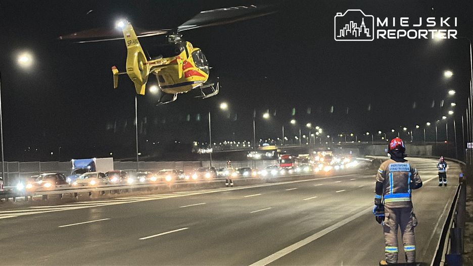 Zderzenie ciężarówki z osobówką na Moście Południowym. Ranne dwie osoby, w tym dziecko. W akcji śmigłowiec LPR