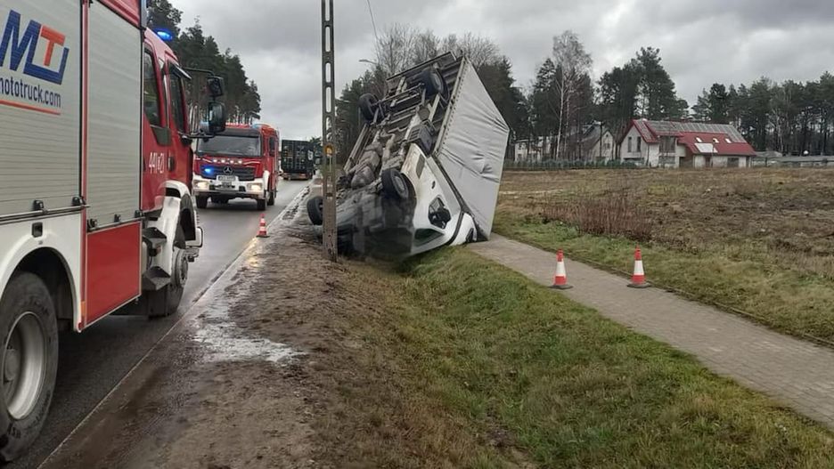 Dramatyczne skutki wichury. Podmuch wiatru przewrócił ciężarówkę