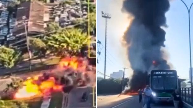 Przerażająca katastrofa lotnicza w Sao Paulo w Brazylii. Mały samolot Beechcraft King Air runął w piątek na ruchliwą ulicę i uderzył w autobus komunikacji miejskiej. Nagrania ze skutków katastrofy udostępniły agencje Reutera i AP. Na platformie X pojawiło się nagranie z momentu samej katastrofy. Można zauważyć, że awionetka spadła na drogę w momencie sporego natężenia ruchu na drodze. W efekcie uderzenia o asfalt doszło do potężnej eksplozji, której towarzyszyły wielkie kule ognia i kłęby czarnego dymu. W wyniku wypadku śmierć poniosły dwie osoby, które znajdywały się na pokładzie maszyny, a sześć innych zostało rannych. W chwili wypadku w autobusie, w który uderzył samolot, nie było pasażerów, dzięki czemu nie ma dodatkowych ofiar. Kierowca autobusu oraz przejeżdżający blisko motocyklista doznali niegroźnych obrażeń.