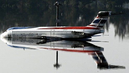 Samoloty toną na zalanym lotnisku - zdjęcia