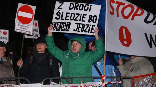 Każdego 18. dnia miesiąca - w miesięcznicę pogrzebu pary prezydenckiej - Jarosław Kaczyński odwiedza grób brata i bratowej na Wawelu. W sobotę towarzyszyli mu m.in. marszałek Sejmu Marek Kuchciński, marszałek Senatu Stanisław Karczewski, minister infrastruktury Andrzej Adamczyk i wicemarszałek Sejmu Ryszard Terlecki. Gdy politycy PiS wjeżdżali na wzgórze, uczestnicy protestu zaczęli wznosić okrzyki - m.in. "Hańba", "Wawel królów, nie prezesów", "Będziesz siedział".