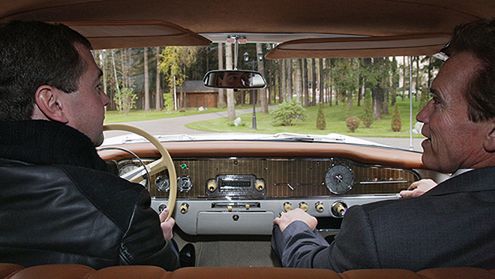 Dmitrij Miedwiediew zaprosił Arnolda Schwarzeneggera na przejażdżkę radziecką Czajką.