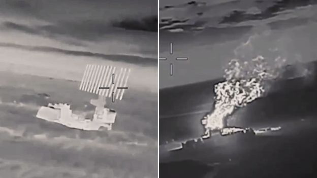 Co więcej, na nagraniu widać wspomniany okręt, na którego pokładzie wybuchł ogromny pożar. Taki obrót spraw zwiększa presję na rosyjską operacyjną mobilność w rejonie Morza Czarnego. Rosjanie będą w najbliższych dniach zmuszeni do przesunięcia radarów czy też wzmocnienia systemów obronnych, a to generuje koszty i logistyczne wyzwania, co mogą wykorzystać Ukraińcy w kolejnych atakach dronów.