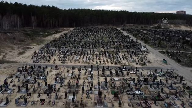 Setki grobów pod Kijowem. Poruszające nagranie z drona obiega świat