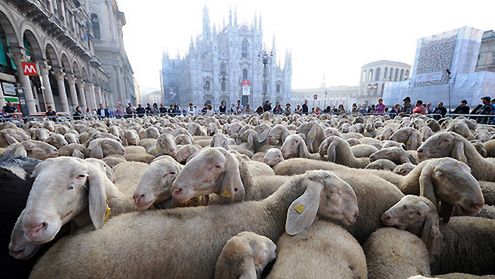 Na placu przed katedrą w Mediolanie pojawiło się nietypowe zbiegowisko. Mieszkańcy miasta i turyści przecierali oczy ze zdziwienia, widząc ogromne stado owiec. Ponad 700 zwierząt szczelnie wypełniło mediolańskie Piazza Duomo.