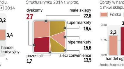 Z badania firmy Euromonitor International wynika, że w 2015 r. trend także nie ulegnie zmianie. - W Polsce handel nowoczesny pozostanie motorem rozwoju rynku, choć ciężar przesuwa się ze sklepów największych na mniejsze - wyjaśniają analitycy firmy.