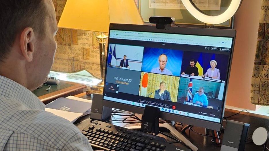 Prezydent Ukrainy przybył w niedzielę do Brukseli, gdzie wraz z szefową KE Ursulą von der Leyen wziął udział w wideokonferencji państw tworzących tzw. "koalicję chętnych". Otwierając spotkanie, prezydent Francji Emmanuel Macron podkreślił, że należy "utrzymać presję" na Władimira Putina.