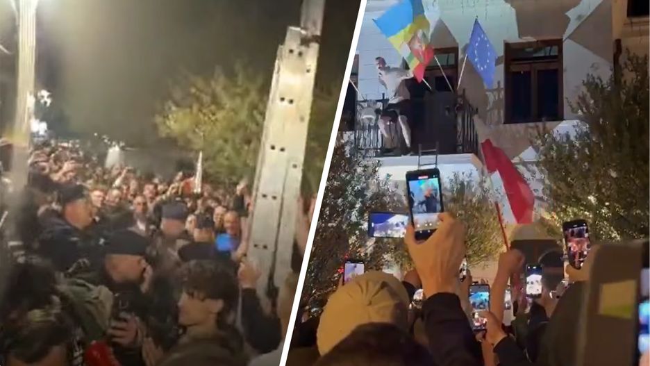 Zamieścił krótkie nagranie, na którym widać mężczyznę wspinającego się po drabinie na balkon urzędu i zdejmuje z niego flagę Ukrainy.