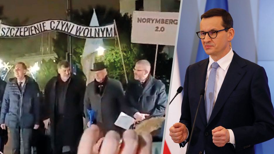 "Sceny spod Sejmu Rzeczypospolitej Polskie z prześmiewczym wykorzystaniem niemieckiego hasła, które w swoim zamierzeniu samo miało być szyderstwem z milionów ofiar niemieckich obozów koncentracyjnych, są dramatycznym i mrocznym obrazem tego, jak nisko potrafią upaść niektórzy politycy i protestujący w bezmyślnej, antyszczepionkowej retoryce" - stwierdził szef rządu.