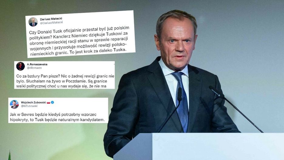 Dariusz Matecki, działacz Solidarnej Polski z Pomorza Zachodniego, nie szczędził szefowi PO gorzkich słów. "Czy Donald Tusk oficjalnie przestał być już polskim politykiem? Kanclerz Niemiec dziękuje Tuskowi za obronę niemieckiej racji stanu w sprawie reparacji wojennych i przywołuje możliwość rewizji polsko-niemieckich granic. To jest krok za daleko Tuska" - napisał.