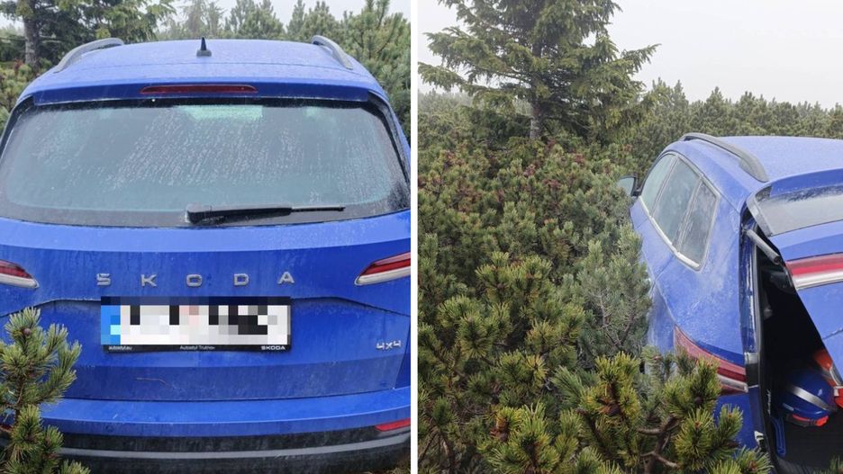 Policja znalazła skradzioną skodę Karoq przy szlaku na Śnieżkę. Samochód wart 170 tys. zł ukryto w kosodrzewinie, wysoko nad Karpaczem.