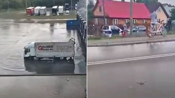 Nad Polską w poniedziałek rozciągnął się front burzowy i w wyniku ulewnych deszczów wielu miejscach doszło do podtopień. Dzięki uprzejmości naszych czytelników udostępniamy nagrania z różnych miejsc w Polsce. Kilka miast zmagało się z paraliżem po zalaniach i podtopieniach. W niektórych miejscach ulice zamieniły się w potoki. Jeszcze do wtorku do godz. 15 obowiązuje ostrzeżenie trzeciego stopnia przed silnym deszczem z burzami w niektórych częściach kraju. "Na wschodzie woj. mazowieckiego oraz na pograniczu woj. lubelskiego i podlaskiego prognozowane są opady deszczu do 80 mm, punktowo do 100 mm. Opadom towarzyszyć będą burze" - przekazał Instytut Meteorologii i Gospodarki Wodnej. Obrazki z Podlasia czy Mazowsza mrożą krew w żyłach, gdzie widać, że ulice i parkingi zostały zalane i wiele dróg było nieprzejezdnych. Nieciekawie jest również w Warszawie po nocnej nawałnicy. W stolicy ulewny deszcz też doprowadził do lokalnych podtopień. Dalej nieprzejezdna jest trasa S8 i w kilku miejscach miasta policjanci kierują ruchem.