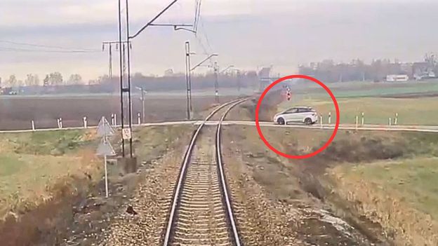 Niebezpieczna sytuacja na przejeździe kolejowym w powiecie pszczyńskim na Śląsku. Kamera w kabinie maszynisty zarejestrowała moment, w którym na niestrzeżonym przejeździe mogło dojść do tragedii. Kierujący toyotą na początku nie zauważył pociągu i niemalże wjechał na torowisko pod nadjeżdżającą maszynę. Na szczęście maszynista w porę zareagował i zaczął zwalniać. Tylko to zapewniło kierowcy czas na szybki manewr cofania i uniknięcia zderzenia. Sytuacja była skrajnie niebezpieczna, a policja opublikowała nagranie ku przestrodze. "Dużą nieodpowiedzialnością wykazał się kierowca samochodu osobowego na przejeździe kolejowym w powiecie pszczyńskim. Auto stanęło bardzo blisko torów i kierujący w ostatniej chwili zdążył wycofać pojazd przed nadjeżdżającym składem. Zdarzenie zarejestrowała kamera maszynisty. Publikujemy nagranie ku przestrodze, aby pokazać, że chwila nieuwagi na jezdni może doprowadzić do bardzo niebezpiecznej sytuacji" - przekazała policja w oświadczeniu.