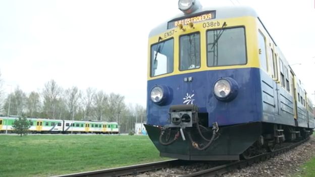 - Jest to najstarszy elektryczny zespół trakcyjny tej serii w Polsce. 9 maja 2023 'Babcia" obchodzi 60-lecie na torach. To pociąg już praktycznie zabytkowy - zdradził Paweł Mielniczak, maszynista Kolei Mazowieckich. Dokładnie sześć dekad temu na polskie tory wyjechał z fabryki PaFaWag we Wrocławiu elektryczny pociąg EN57-038 i pomimo długiej służby, dalej wozi pasażerów, obecnie Kolei Mazowieckich. Stąd też nazywany jest przez kolejarzy "Babcią". Jakub Bujnik, dziennikarz Wirtualnej Polski, przejechał się tym pociągiem i pokazał, jak wyglądają kabina maszynisty i wagony "Babci" od środka. Fotele zabytkowej maszyny zostały wymienione na "bardziej wygodne", ale nie pozwolono na zmodernizowanie elektroniki, a to dlatego, by pociąg jak najlepiej przypominał swoją pierwotną wersję. - Tutaj maszynista musi wykazywać się jakąś wiedzą elektryka, mechanika, by naprawić drobne usterki. Natomiast nowe pociągi są już oparte na komputerach, elektronice, tutaj tego praktycznie nie mamy - wyjaśnił Mielniczak. Wewnątrz kabiny maszynisty znajduje się wiele analogowych urządzeń, jak chociażby prędkościomierz, a samo wnętrze sprawia, że podróżujący "Babcią" mogą poczuć dawny klimat PRL-u.