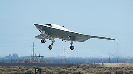 Na zdjęciu wykonany w układzie latającego skrzydła dron Northrop Grumman X-47B, który w tym roku po raz pierwszy wzniósł się w powietrze. Po wejściu do służby aparat będzie mógł wykonywać misje zwiadowczo-rozpoznawcze i atakować cele naziemne. Maszyna zostanie przystosowana do operowania z lotniskowców i tankowania w powietrzu.