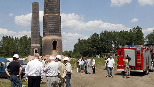 Kilkudziesięciometrowy komin przemysłowy zawalił się w zakładach azotowych w Chorzowie. Zginęły cztery osoby - robotnicy prowadzący prace remontowe wewnątrz komina.