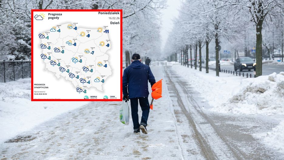 W drugiej części poniedziałku na południu i południowym zachodzie pojawią się słabe opady śniegu. Prognozowana suma to ok. 2–5 cm. Wiatr z kierunków wschodnich i południowo-wschodnich będzie słaby i umiarkowany, silniejszy na zachodzie. Warunki drogowe lokalnie mogą się pogarszać wraz z postępującym zachmurzeniem i opadami.