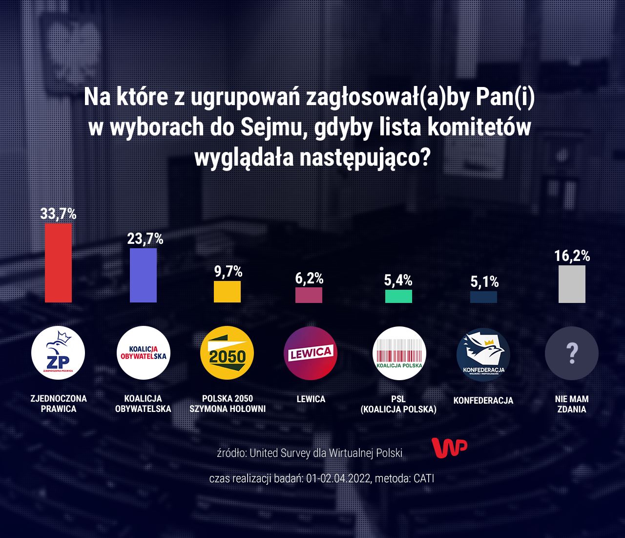 Sondaż United Surveys dla Wirtualnej Polski został przeprowadzony w dniach 1-2 kwietnia 2022 roku, metodą CAWI, na reprezentatywnej próbie 1000 osób.