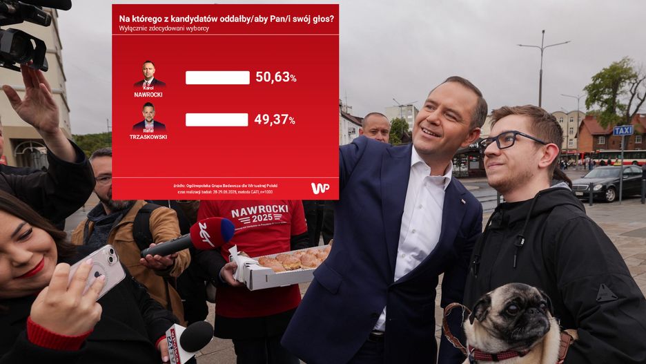 Sondaż przeprowadzony przez OGB dla Wirtualnej Polski w dniach 28-29 maja 2025 roku pokazuje, że - biorąc pod uwagę zdecydowanych wyborców - w tym momencie to Karol Nawrocki prowadzi przed II turą wyborów prezydenckich. Z poparciem 50,63 proc. wyprzedza Rafała Trzaskowskiego, który zdobyłby 49,37 proc. głosów.