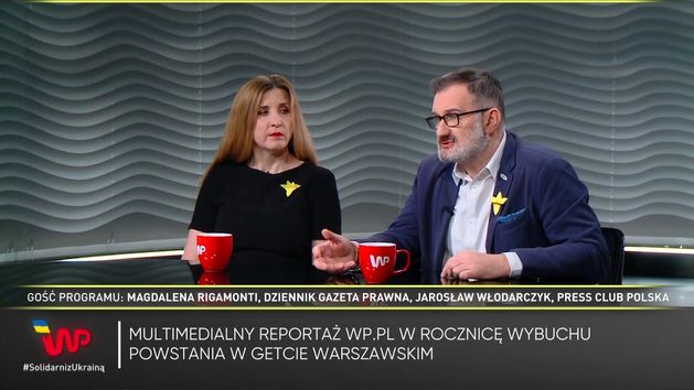 W środę przypada 79. rocznica powstania w getcie warszawskim. "Nigdy więcej. A już nikomu miało się nie śnić" - to przesłanie nowego reportażu Wirtualnej Polski oraz Magdaleny Rigamonti i Jarosława Włodarczyka, którzy przygotowali go z tej okazji. Przypominają wydarzenia sprzed 79 lat w formie interaktywnego reportażu multimedialnego. Jego fundamentem są rozmowy wideo ze świadkami historii. Wydarzenia sprzed dekad nawiązują też do aktualnej sytuacji geopolitycznej. - Kiedy zaczęliśmy zajmować się przygotowaniem tego multimedialnego reportażu nie zakładaliśmy, że Putin wejdzie do Ukrainy i zaatakuje niepodległe państwo. Gdy pracowaliśmy nad tym materiałem, okazało się, że historia się powtarza. Mamy Buczę, Irpień, mamy morderstwa, gwałty i straszną wojnę - mówiła Magdalena Rigamonti z "Dziennika Gazety Prawnej" w programie "Newsroom". - Nie można Holokaustu na razie porównywać do tego, co dzieje się w Ukrainie, ale Krystyna Budnicka, która przeżyła getto warszawskie i 9 miesięcy przetrwała w bunkrze, mówi, że okrucieństwo wojny jest takie samo. Kiedy bombarduje się niewinnych, miasta, to jest to zbrodnia wojenna. Pokazujemy w naszym materiale, że cztery pokolenia mają tę traumę - mówił Jarosław Włodarczyk z Press Clubu Polska. - Zaczęła się nowa wojna. Pokolenie moich dzieci to czwarte powojenne pokolenie i w tym pokoleniu zaczyna się nowa wojna. Krystyna Budnicka, która przesiedziała 9 miesięcy w bunkrze, powiedziała nam: "Dobrze, że nie mam się o kogo bać, nie mam dzieci, ani wnuków". Straciła całą piętnastoosobową rodzinę. Część została wywieziona do Treblinki, część zamordowana w getcie - dodała Magdalena Rigamonti.