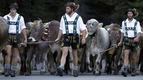 Gdy lato ma się ku końcowi, a jesień zbliża się wielkimi krokami, w Alpach rozpoczyna się spędzanie bydła z pastwisk. Przez całe lato krowy i młode zwierzęta trzymane są na górskich łąkach, by wraz z przyjściem niższych temperatur sprowadzić zwierzęta do wiosek położonych w dolinach. Zbiorowe spędzanie bydła z gór odbywa się w uroczysty sposób w Austrii i Niemczech. W sumie w regionach alpejskich co roku sprowadza się kilkaset tysięcy zwierząt.