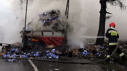 Strażacy gaszą pożar tira na drodze krajowej nr 19 w Ciecierzynie pod Lublinem. Ciężarówka nie uległa wypadkowi. Nie wiadomo jeszcze, co było przyczyną pożaru tira wiozącego podpaski, pieluchy i inne materiały higieniczne.