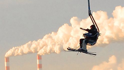 Stok narciarski w miejscowości Kamieńsk, w tle elektrownia Bełchatów.