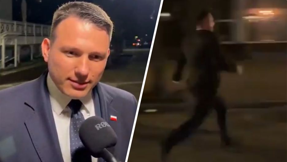 Na nagraniach widać, że dziennikarze próbują biegnącemu Mentzenowi zadać pytanie, ale ten się irytuje i zbywa ich: "nie widzi pan, że się spieszę?". Kandydatowi Konfederacji pomagają ochroniarze z prywatnej firmy wynajmowani przez partię.