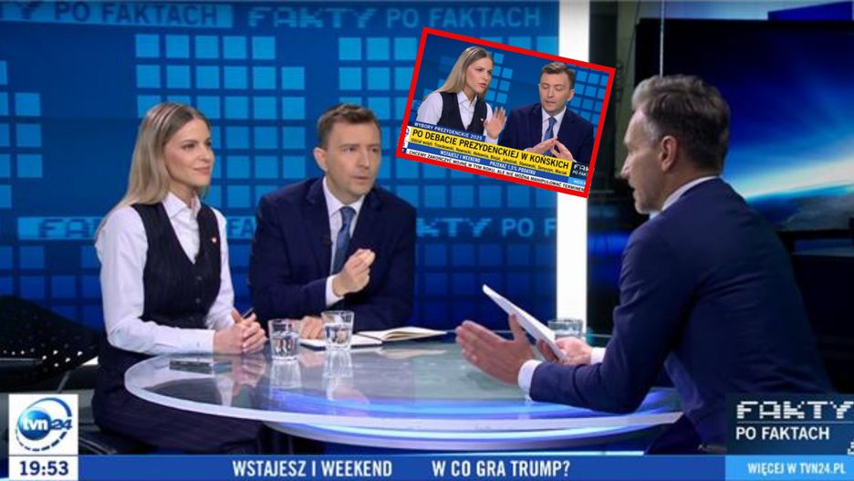 Gośćmi sobotnich "Faktów po faktach" w TVN24 byli poseł Łukasz Schreiber (PiS) i Aleksandra Gajewska, wiceministra rodziny, pracy i polityki społecznej (KO). Politycy komentowali m.in. piątkową debatę prezydencką w Końskich.