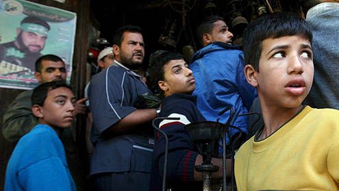 Palestyńczycy w Gazie czekają żeby przerobić swoje kuchenki na napędzane olejem napędowym, z powodu braku gazu, 23 listopada. Izrael spotkał się z krytyką na arenie międzynarodowej za blokadę Strefy Gazy trwająca od 5 listopada. Od tego czasu na teren wpuszczono jedynie kilka transportów z pomocą humanitarną.