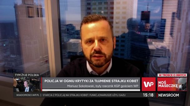 - Całkowicie niepotrzebne to jest - powiedział w programie "Newsroom" były rzecznik KGP Mariusz Sokołowski. Inspektor w stanie spoczynku komentował nagranie, na którym funkcjonariusz mocno odpychał tarczą mówiącego do niego człowieka. W jego ocenie to nie do policjantów powinny być kierowane postulaty strajkujących. - To nie policjanci podejmowali decyzję o ogłoszeniu tego wyroku - stwierdził Sokołowski. Zaznaczył jednak, że tego typu interwencje widać na całym świecie, "nie tylko na Białorusi". W jego ocenie najważniejsze jest stosowanie się do poleceń funkcjonariuszy, nawet jeśli mamy wątpliwości związane z ich zasadnością. Sokołowski przyznał też, że w przypadku postrzelenia fotoreportera Tomasza Gutrego "trochę będzie usprawiedliwiał policję". Podkreślił, że funkcjonariusze musieli poinformować o zamiarze użycia środków przymusu bezpośredniego i fotoreporter powinien opuścić to miejsce.