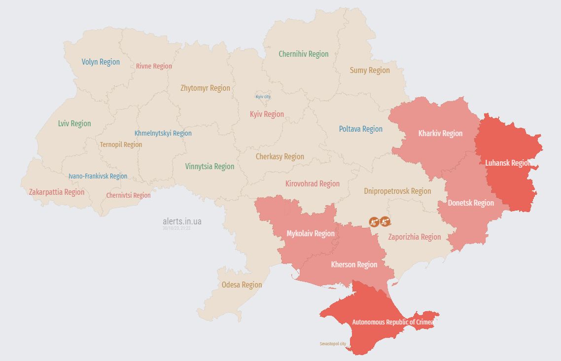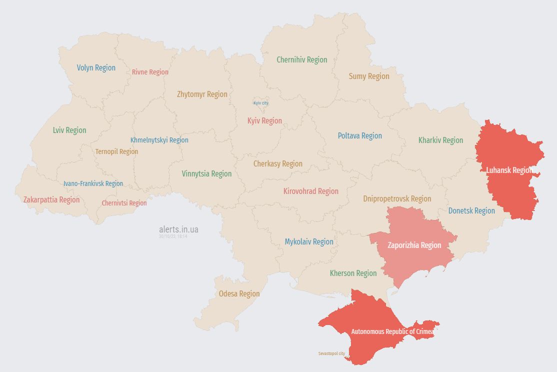 Aktualna mapa alarmów przeciwlotniczych w Ukrainie.