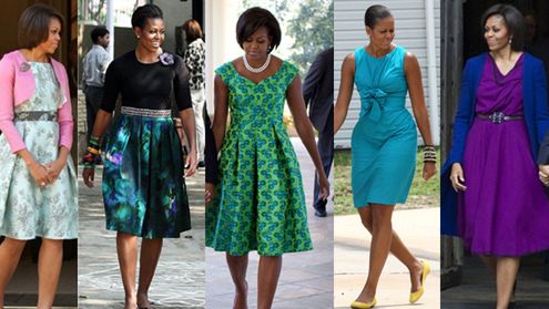 Pierwsza dama USA słynie z dbałości o dobór elementów garderoby. Chociaż czasem bywa krytykowana przez dziennikarzy za odsłonięte ramiona, czy wybór sukni od niewłaściwego projektanta, to jednak nie można jej zarzucić spektakularnych wpadek. Na obcasie, w płaskich butach, w krótkich spódnicach, czy balowych strojach - Michelle zawsze wygląda świetnie. To co najlepiej charakteryzuje jej stroje, to odważne kolory i zamiłowanie do noszenia sukienek. Nigdy nie zobaczymy pierwszej damy w dwóch takich samych kreacjach. Niektórzy nazywają ją już ikoną mody. Oto kilka sukni Obamy, które urzekają krojem i kolorystyką.