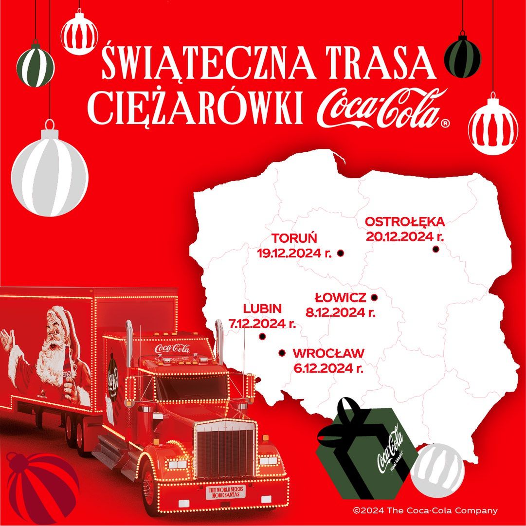 Urzeczywistniając tą pełną magii i dobra podróż, po raz kolejny, do polskich miast zawitała świąteczna ciężarówka Coca-Cola. Tegoroczna trasa po Polsce wiedzie szlakiem pięciu miast – była już we Wrocławiu, Lubinie oraz Łowiczu, a przed nami przystanki w Toruniu (19 grudnia) oraz Ostrołęce (20 grudnia) – mieście wybranym przez samych konsumentów w ramach głosowania, w aplikacji Coca-Cola.