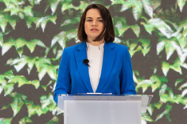 Swiatłana Cichanouska białoruska działaczka polityczna, kandydatka na prezydenta Białorusi w wyborach prezydenckich w 2020 roku. Według oficjalnych wyników wyborów, większe poparcie uzyskał Aleksander Łukaszenka.