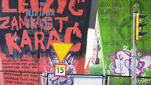 Filar wiaduktu przy ulicy Klinicznej w Gdańsku. Mural powstał w 2010 roku, dzięki wspólnej akcji Fundacji Klamra i Krytyki Politycznej z Trójmiasta. Projekt ma zwrócić uwagę na problemy i na złe traktowanie osób uzależnionych od narkotyków.