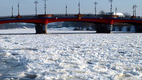 Od paru dni temperatura w Kołobrzegu wynosi od -13 do -17 st.C. Gładka powierzchnia zamarzniętej rzeki wygląda jak tor łyżwiarski