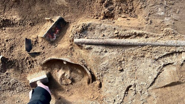 Jak poinformowało na swoim Facebooku Stowarzyszenie Templum, grupa archeologów prowadzona przez dr Przemysława Kołosowskiego dokonała niecodziennego odkrycia w woj. zachodniopomorskim. Przeszukując pole uprawne w poszukiwaniu śladów osady, odkrytej w listopadzie 2021 roku, badacze natrafili na mogiłę z końca II wojny światowej. W dole, który w przeszłości służył jako rów strzelecki, znaleziono szczątki pięciu lub sześciu niemieckich żołnierzy i liczne artefakty. Kości były rozczłonkowane i płytko pochowane. To efekt wybuchu moździerza lub innego pocisku. Ku zaskoczeniu ekspertów, rolnicy mimo orki pola, przez 77 lat na nic w tym miejscu nie natrafili. - Na owym polu i w jego okolicy "okopały" się wojska Kriegsmarine. Żołnierze niemieckiej marynarki wojennej ulokowani w dołkach strzeleckich, mieli ochraniać drogę, którą niemieccy uchodźcy - cywile uciekali w stronę Wolina - przekazał lokalny regionalista. Podejrzewa się, że zabitych Niemców pochowała ludność cywilna, lokalni rolnicy. Zrobiono to szybko i dość powierzchownie. Potwierdza to fakt, że przy szczątkach, oprócz rzeczy osobistych, znaleziono kompletne oporządzenie: buty, hełmy, pasy, ładownice, maski gazowe, bagnety, granaty, amunicję czy karabiny. Były wśród nich też dwa nieprzełamane wojskowe znaki tożsamości. Na miejsce wezwano policję i saperów, którzy przejęli nadzór nad zawartością wykopanej mogiły. Późniejszym badaniem szczątków zajmie się specjalista od antropologii sądowej dr hab. Andrzej Ossowski. Jego ekipa ustali również czy zidentyfikowani żołnierze z II wojny światowej mają jeszcze żyjących krewnych, którym można byłoby zwrócić znalezione przy nich przedmioty osobiste.