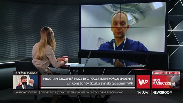 W programie "Newsroom" Wirtualnej Polski Agnieszka Kopacz rozmawiała z doktorem Konstantym Szułdrzyńskim o projekcie narodowej strategii szczepień. - Wielka improwizacja i pospolite ruszenie zawsze były polską specjalnością. Nie mamy wyjścia, to musi się udać. Jednym sposobem, żebyśmy przetrwali tę pandemię, a tak naprawdę ją przerwali, jest powszechny program szczepień - powiedział doktor. - To nie tylko liczba zaszczepionych, ale czas, w jakim to zrobimy, zdecyduje o tym, jak dalej będzie przebiegała ta choroba i jak wielkim obciążeniem będzie dla nas wszystkich - dodał Szułdrzyński. Gość Agnieszki Kopacz stwierdził, ze jego zdaniem realne jest, aby polska służba zdrowia przygotowała się do szczepień. Na pytanie, co jest najsłabszym punktem planu przedstawionego przez Ministerstwo Zdrowia Szułdrzyński odparł, że dojazd do pacjenta. - Trudno będzie zorganizować zespoły wyjazdowe bez żadnego wzorca - oznajmił lekarz.