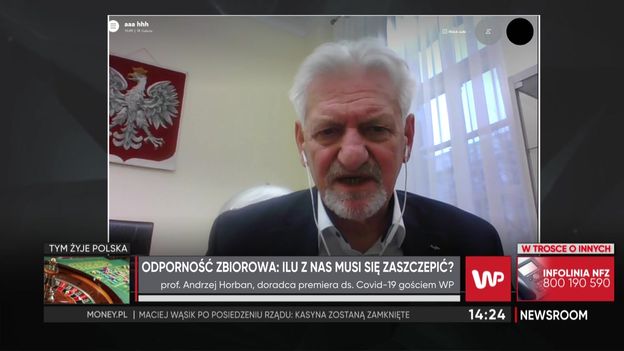 Szczepionka na COVID została zatwierdzona przez Europejską Agencję Leków. Mimo zapewnień o tym, że szczepionka na COVID jest bezpieczna, duża część Polaków nie chce się szczepić. - Na to, żeby przerwać epidemię, musimy zaszczepić mniej więcej 60-70 procent społeczeństwa - podkreślił w programie WP "Newsroom" prof. Andrzej Horban. Doradca premiera ds. epidemii zaznaczył, że brak zaszczepienia odpowiedniego odsetka Polaków będzie miał swoje konsekwencje. - Wtedy epidemia zamieni się w coś, co nazywa się endemia, czyli stałe przebywanie danego zarazka. Będziemy mieli wtedy dwa piki zakażeń jak z grypą: wiosną i jesienią - ostrzegał ekspert. Prof. Andrzej Horban ostro wypowiedział się także o lekarzach, którzy zapowiedzieli, że nie przyjmą szczepionki na COVID. - To budzi moje zdumienie. Nie wiem, kto im dawał dyplom - stwierdził ekspert.