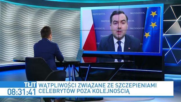 Szczepienia przeciw koronawirusowi obejmują w pierwszym etapie przede wszystkimi medyków. Kontrowersje budzi podanie preparatu osobom spoza grupy "0", ale także tempo szczepień pracowników służby zdrowia. – Chaos jest tylko po jednej stronie. Wydaje się, że są środowiska w Polsce, które wzięły w obronę te 18 zaszczepione osoby i to jest ta linia obrony - powiedział w programie "Tłit" Wirtualnej Polski rzecznik prezydenta Błażej Spychalski. Zaszczepienie artystów i celebrytów nazwał "nieprzyjemną historią" i przyznał, że Andrzej Duda rozmawiał na ten temat w gronie współpracowników. - Nagle mamy pewną grupę osób, która szczepi się poza kolejką, zabierając przecież realnie dostęp do szczepionki tym, które są dziś na pierwszej linii walki z koronawirusem - ocenił gość Michała Wróblewskiego. Jego zdaniem zabrakło przeprosin ze strony zaszczepiony w WUM. - Gdyby te osoby zaczęły od przeprosin, to pewnie nie byłoby sprawy - dodał Błażej Spychalski.