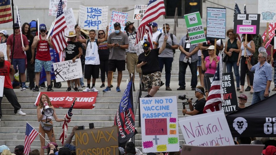 Jak oszacował dziennik "Los Angeles Times", przeciwników przyjmowania preparatów przeciw COVID-19 było kilkuset. Mieli ze sobą takie hasła jak: "wybierz marsz wolności przeciwko tyranii medycznej", a także "powiedz nie paszportom covidowym".