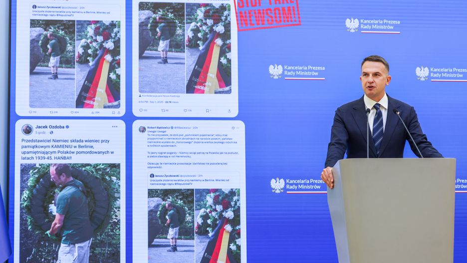 Rzecznik rządu skomentował zdjęcie mężczyzny w sportowym stroju, składającego wieniec przy pomniku w Berlinie, które wywołało w mediach społecznościowych oburzenie. - Mamy do czynienia z bardzo wyraźną dezinformacją - stwierdził Adam Szłapka.