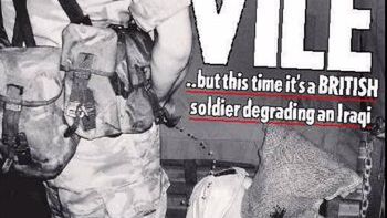 jak żołnierze brytyjscy kopią, depczą i oddają mocz na Irackich jeńców.