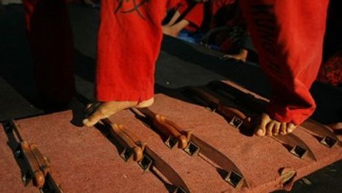 Palestyńscy chłopcy na treningu w szkole sztuk walki Czerwony Smok w Beit Lahia, w północnej Strefie Gazy. Od izraelskiej ofensywy w tym rejonie, coraz więcej dzieci zapisuje się na lekcje, by wyładowywać agresję i zapewnić sobie bezpieczeństwo. Nie polecamy tego typu zajęć żadnemu dziecku.