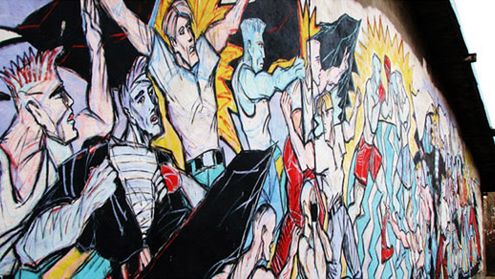 Ulica Jana z Kolna w Gdańsku, jeden z fragmentów muru ozdobionych przez artystów zajmujących się graffiti i muralami.