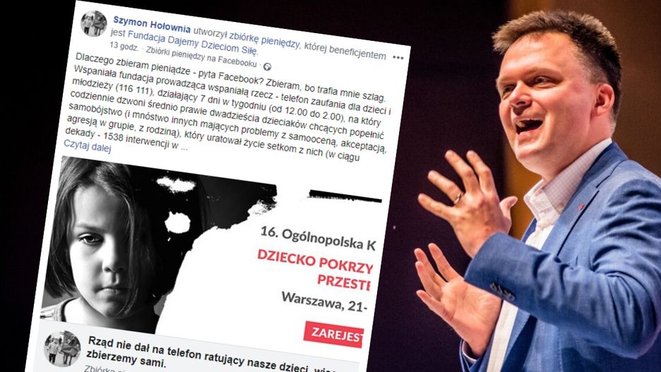 Fundacja Dajemy Dzieciom Siłę prowadzi telefon zaufania dla dzieci i młodzieży od prawie 11 lat. W tym roku Ministerstwo Edukacji Narodowej odmówiło przyznania dotacji na jego funkcjonowanie. Szymon Hołownia nie mógł przejść obok tego obojętnie i założył zbiórkę na Facebooku. Internauci tłumnie włączyli się do akcji.
